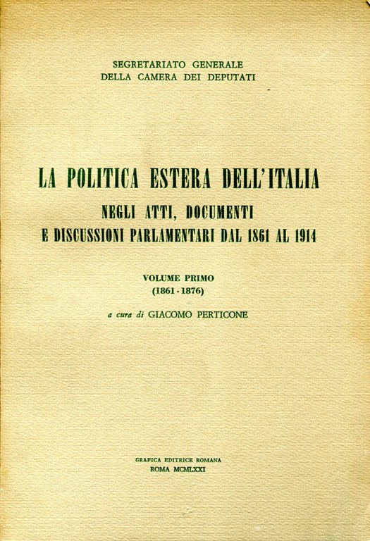 La politica estera dell'Italia negli atti, documenti e discussioni parlamentari dal 1861 al 1914. Vol. 1, 1861-1876. Vol. 2, tomo 1 1876-1883. Vol. 2, tomo 2 1883-1887