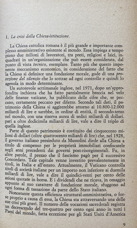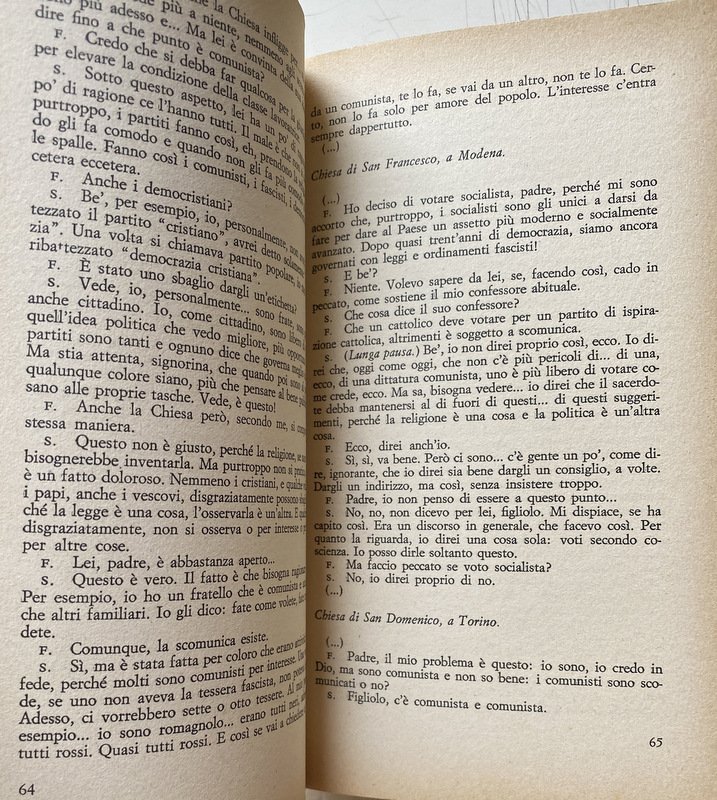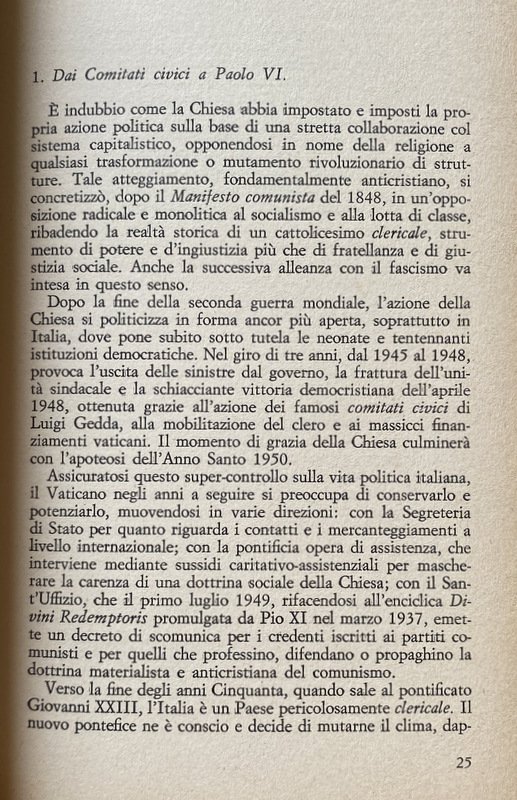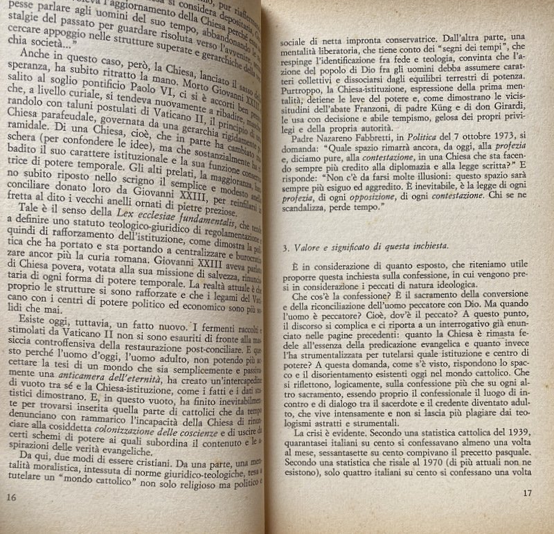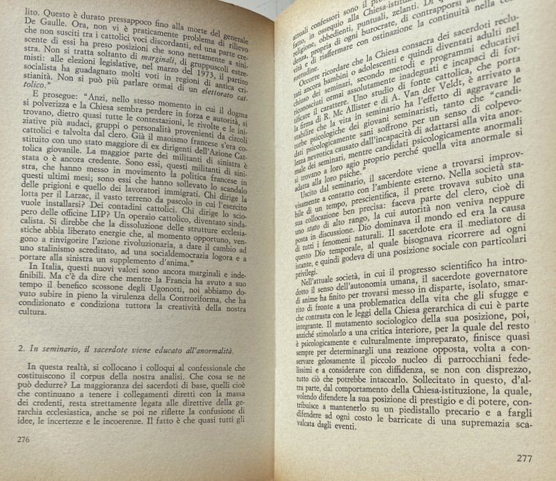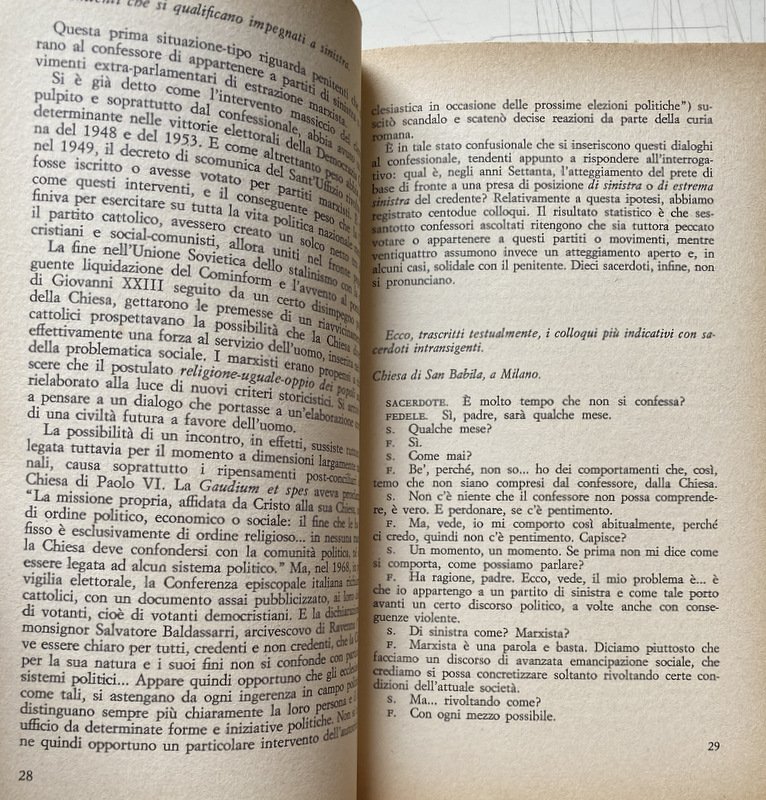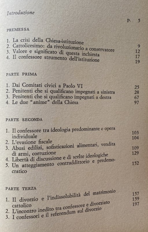 - Anni Sessanta, Anni Settanta, Cattolicesimo, Concilio Vaticano II, Inchieste, Scandali, Colloqui, Confessionale, Sacerdoti, Etica, Politica, Attualità, Sessualità, Sociologia, Teologia, Chiese, Cultura cattolica, Società, Religione, Dossier, Chiesa, Vocazione, Messa, Sacramenti, Autoritarismo, Ideologie politiche, Socialismo, Cattolica, Partito comunista, Ateismo, Marxismo, Sacra Rota, Aborto, Cristianesimo, Critica, Collezionismo, Libri Vintage, Libri fuori catalogo, Contestazione, Interviste, Divorzio, Satanismo