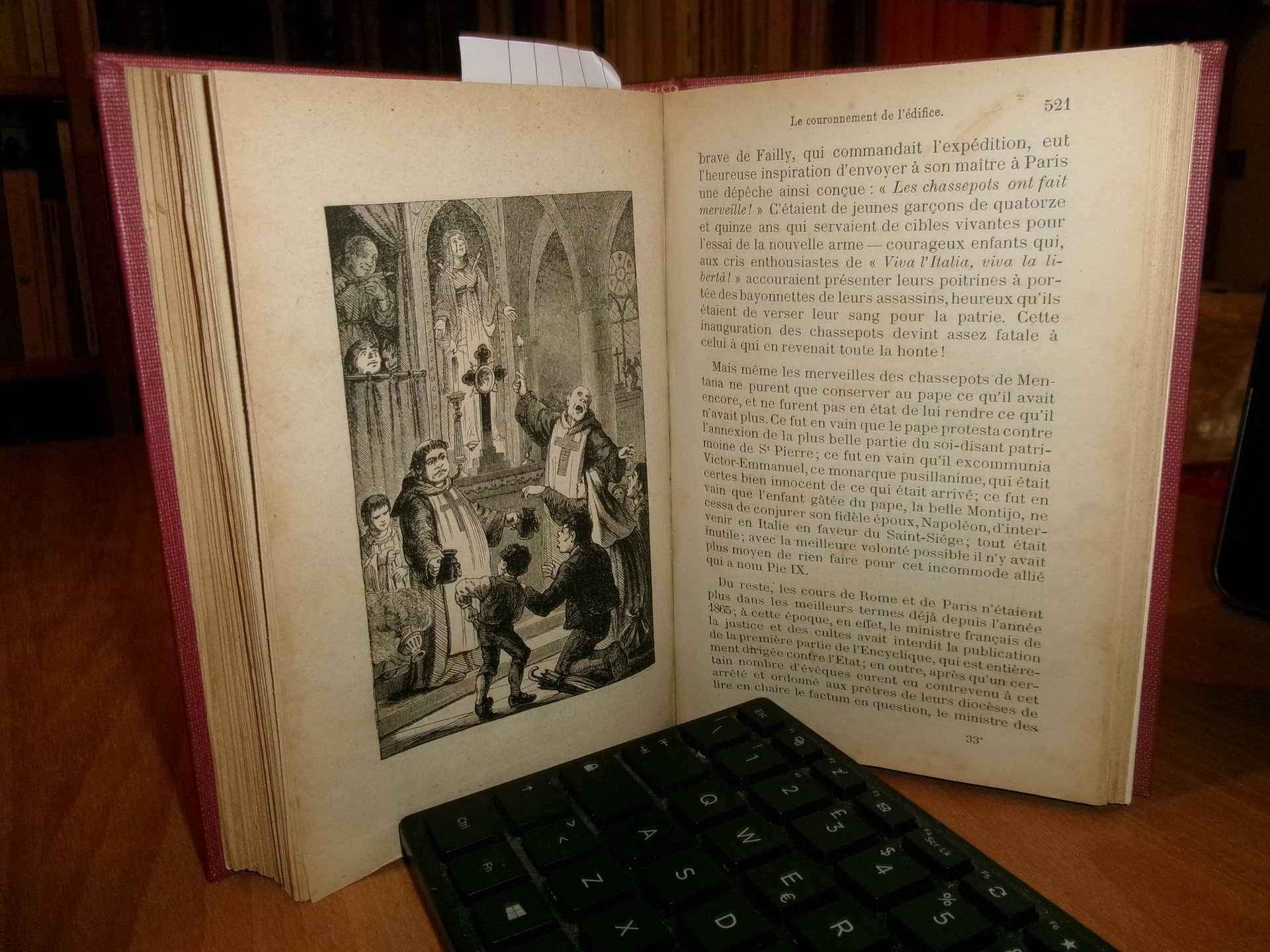 Anonimo. Berne (Suisse), Seul Dépositaire, B.-F. Haller, 1874. La Prêtraille romaine, tableau historique du fanatisme et de la corruption dans L' église catholique romaine. Traduit de l' allemand de Corvin. In-16°, tela (legatura nuova) con titolo in oro entro tassello al dorso. XL, 588 pp. con illustrazioni nel testo. Ottimo raro esemplare. Neg. mens. bianca cassa