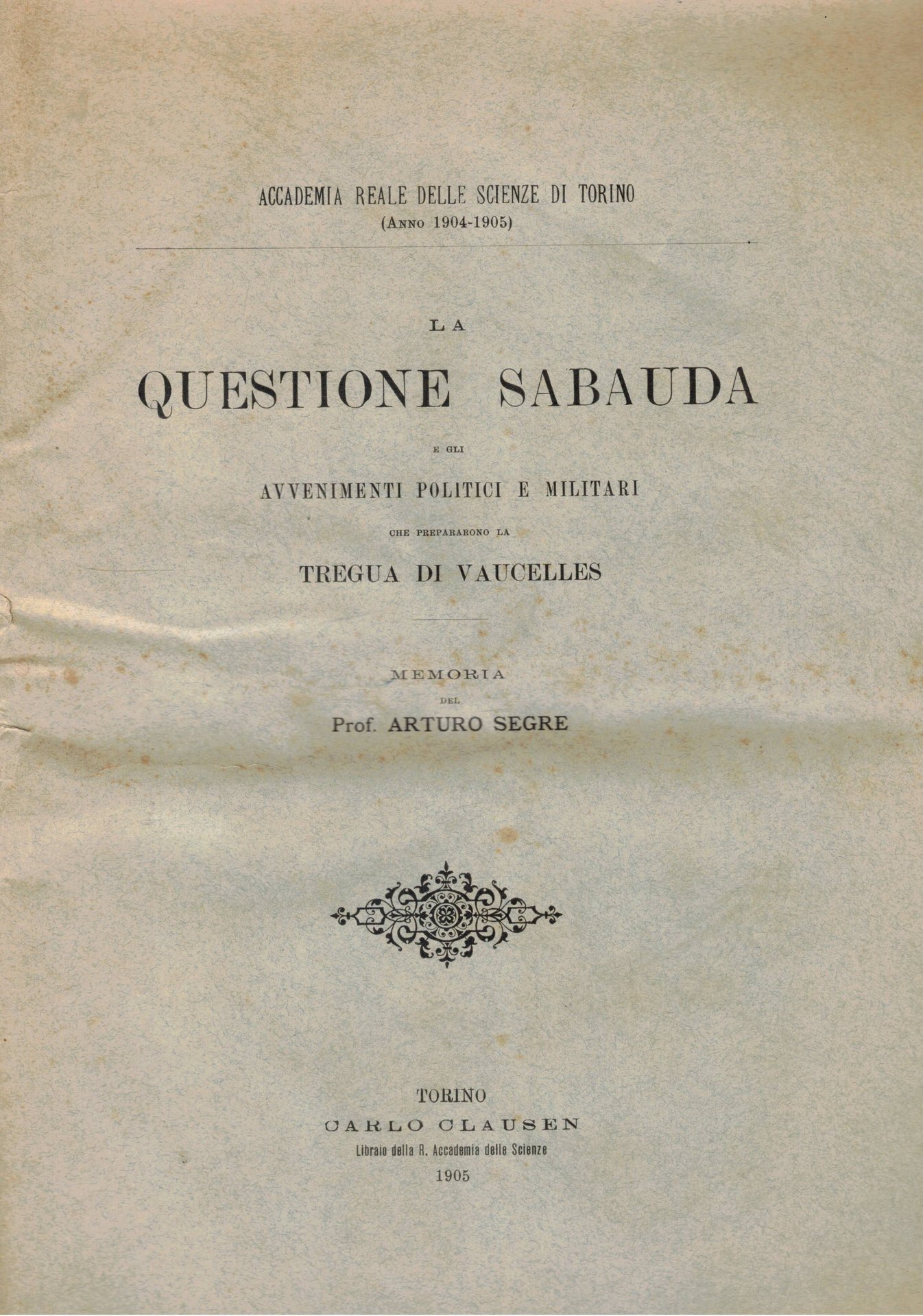 La questione sabauda e gli avvenimenti politici e militari che prepararono la tregua diVaucelles. Estratto. | Libri antichi e moderni | Segre Arturo.