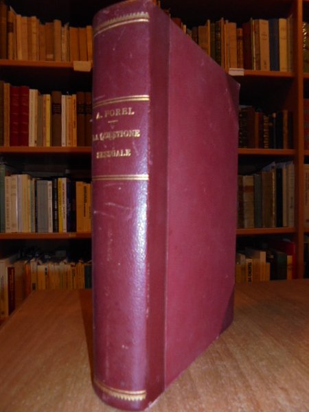 Augusto, Forel. Milano, Fratelli Bocca, 1942. La questione sessuale esposta alle persone colte. Versione italiana del Dott. Carlo Ruhl. Nuova edizione. In - 8°, m. pelle con angoli, titolo inoro al dorso. 494 pp. Ben conservato. Neg. mob. 21