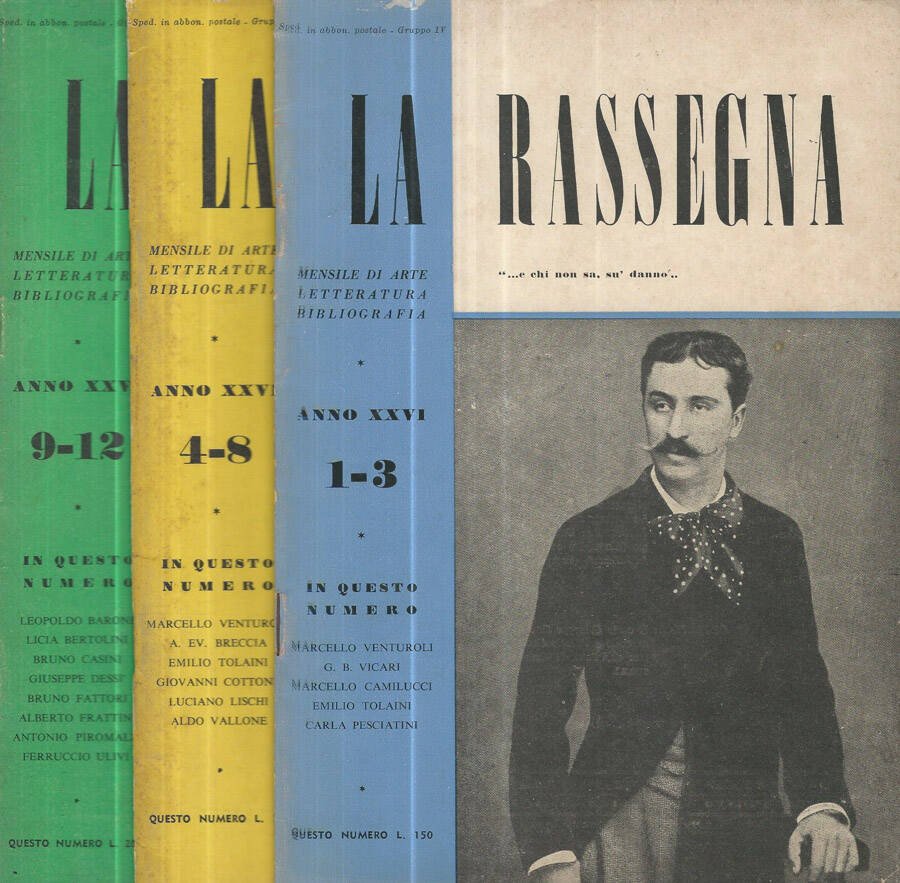 Annata completa della rivista mensile di arte, letteratura e bibliografia, anno XXVI, composta dal n. 1-3 di gennaio-marzo, dal n. 4-8 di aprile-agosto e dal n. 9-12 di settembre-dicembre. Piatti in cartoncino, scuriti dal tempo, illustrati, con lievi fioriture sparse e piccole abrasioni. Pagine leggermente ingiallite, con testo a due colonne ed alcune figure. Numero complessivo delle pagine 112 (32-32-48).