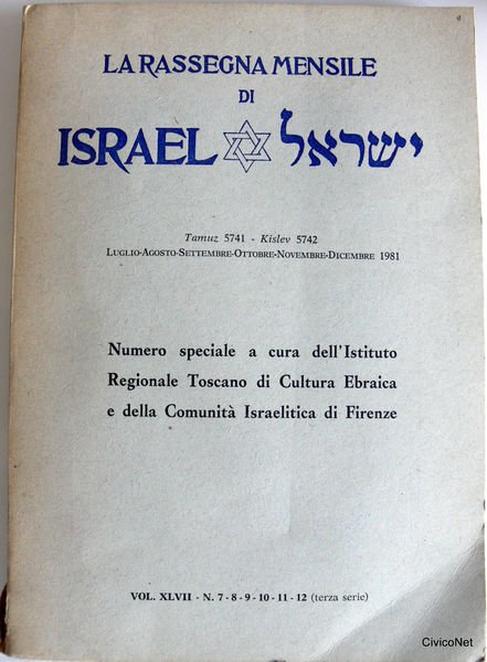 LA RASSEGNA MENSILE DI ISRAEL VOL. XLVII 47 N.7-8-9-10-11-12 LUGLIO-AGOSTO SETTEMBRE-OTTOBRE NOVEMBRE-DICEMBRE 1981 NUMERO SPECIALE. A CURA DELL'ISTITUTO REGIONALE TOSCANO DI CULTURA EBRAICA E DELLA COMUNITÀ ISRAELITICA DI FIRENZE