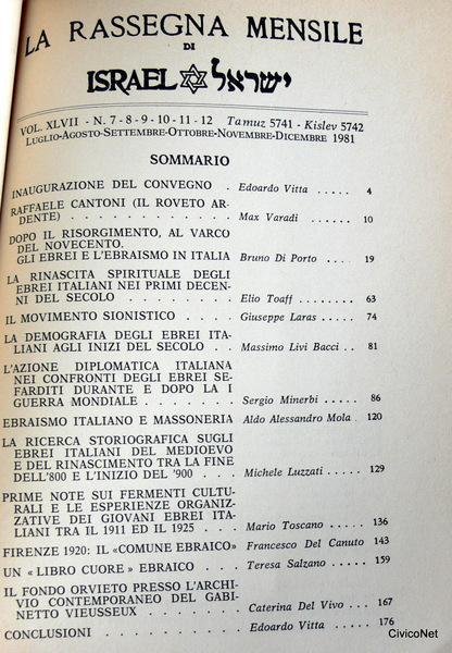 - Edoardo Vitta, Max Varadi, Bruno Di Porto, Elio Toaff, Giuseppe , Laras, Massimi Livi Bacci, Sergio Minerbi, Aldo Alessandro Mola,, Michele Luzzati, Mario Toscano, Francesco Del Canuto, Teresa Sl, Azano, Caterina Del Vivo, Edoardo Vitta