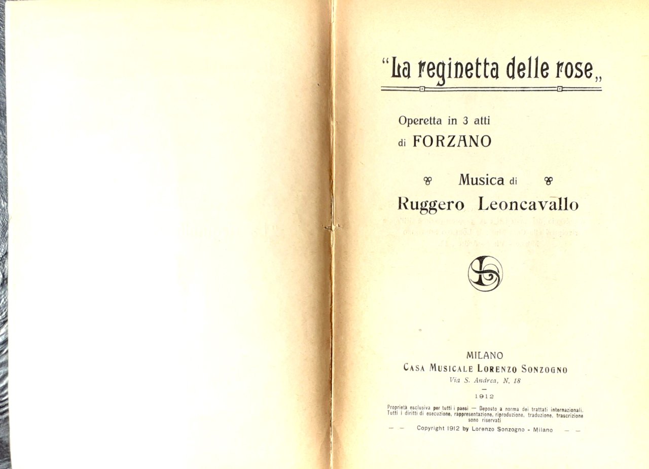 La reginetta della rose Musica di Leoncavallo Sonzogno Milano 1912