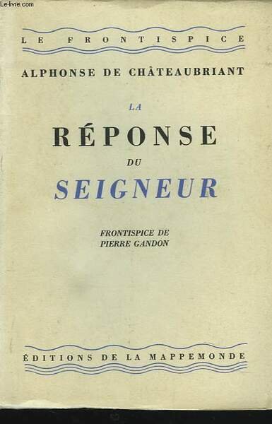 1943. In-12. Broché. Etat d'usage, Couv. légèrement passée, Dos plié, Intérieur frais. 336 pages. Couverture rempliée. Frontispice en noir et blanc de Pierre Gadon. . . . Classification Dewey : 840-Littératures des langues romanes. Littérature française