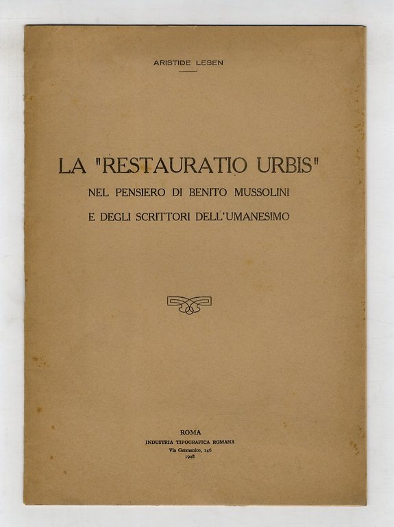 Roma, Industria Tipografica Romana, 1928, in-8, br. editoriale, pp. 10. Ottime condizioni.
