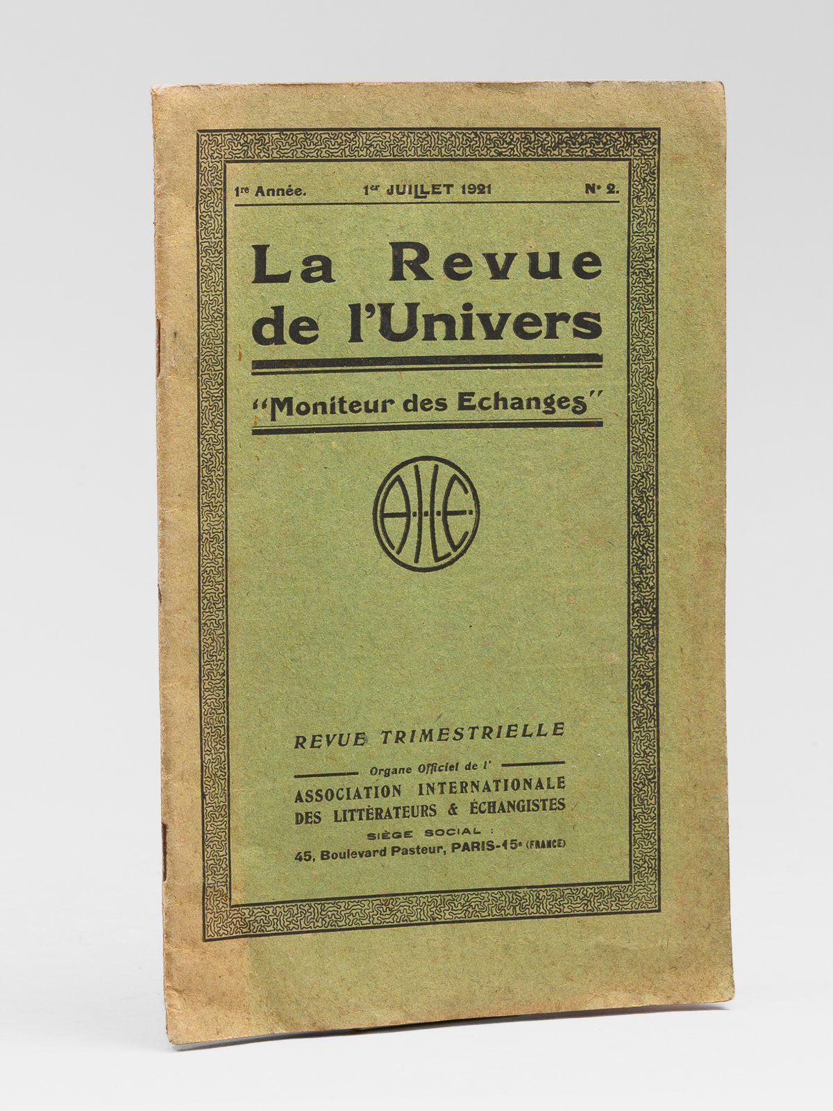 La Revue de l'Univers, "Moniteur des Echanges" 1ère année, N° 2, 1er juillet 1921 - Revue trimestrielle, Organe officiel de l'Association Internationale des Littérateurs et Echangistes.