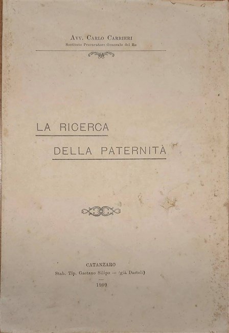 in-8, pp. 58, bross. edit. Note giuridiche sul problema dell'abbandono e riconoscimento della paternità nei minori. [408]