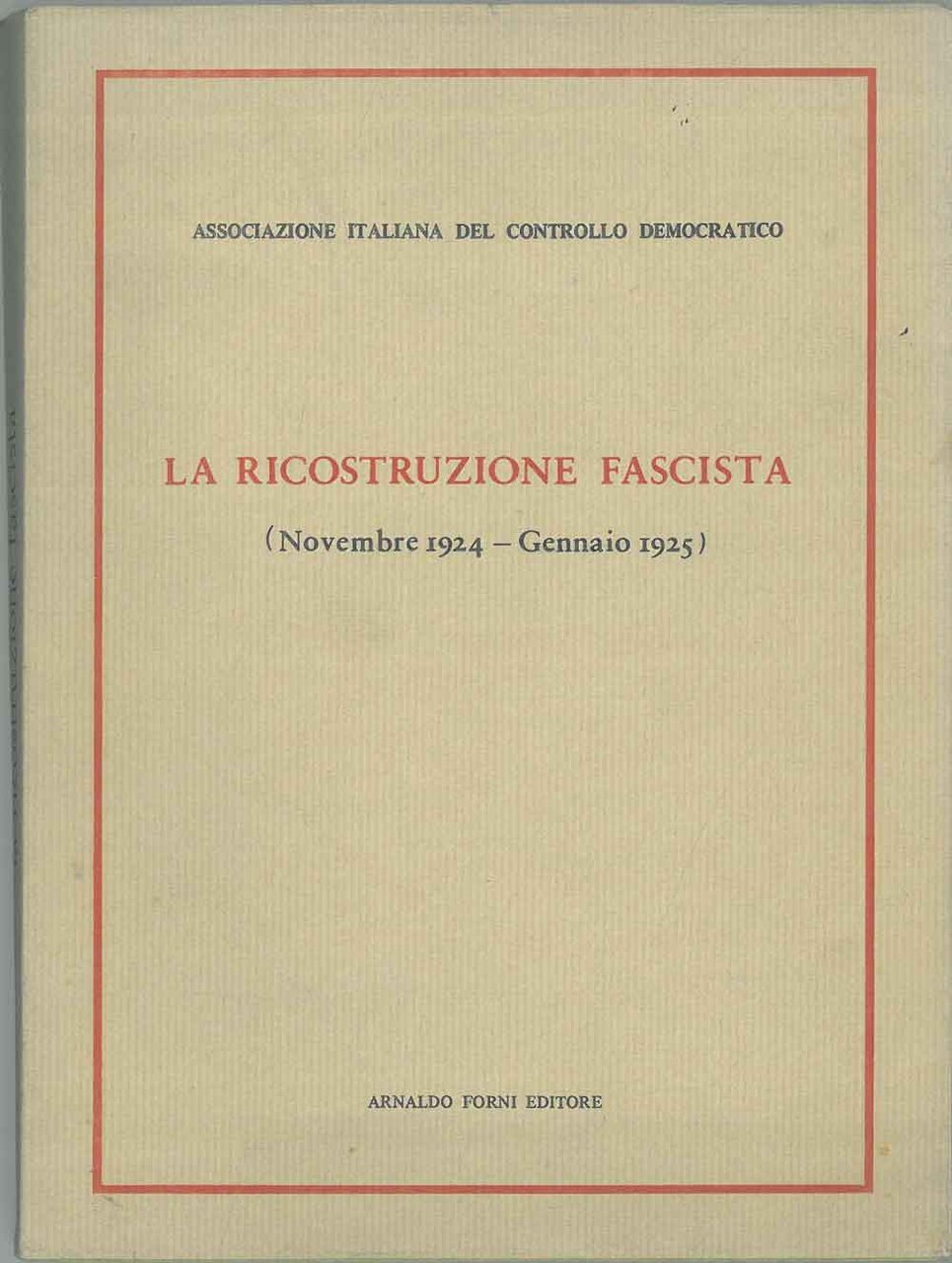 La ricostruzione fascista (Novembre 1924 - Gennaio 1925). Ristampa anastatica
