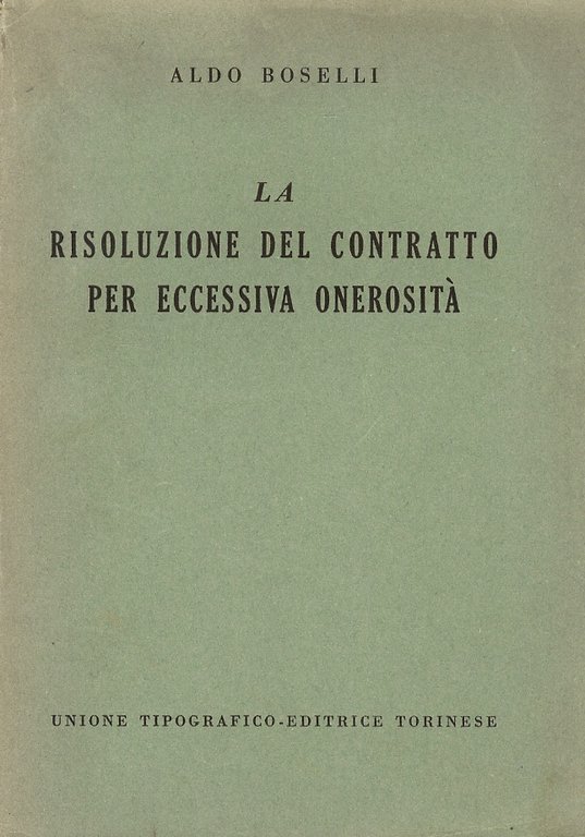 La risoluzione del contratto per eccessiva onerosità. | Libri antichi e moderni | Boselli A.