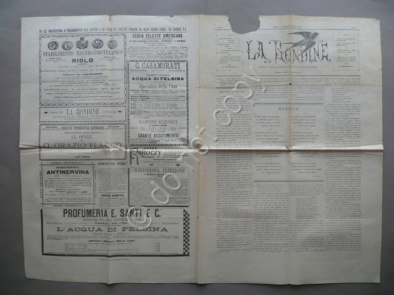 La Rondine Giornale Anno I N.20 Bologna 1886 Letteratura Poesia Bareggi Le Fate