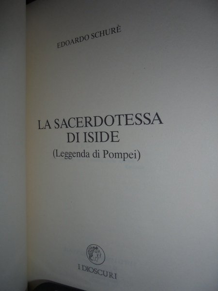 Edoardo, Schurè. Genova, I Dioscuri, 1987. La Sacerdotessa di Iside. (Leggenda di Pompei). In - 8°, cartoncino edit. 278, (1) pp. Libro come nuovo. Neg. mob. 8
