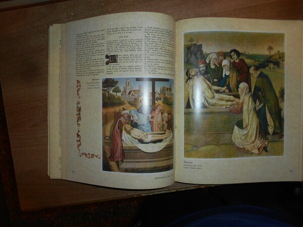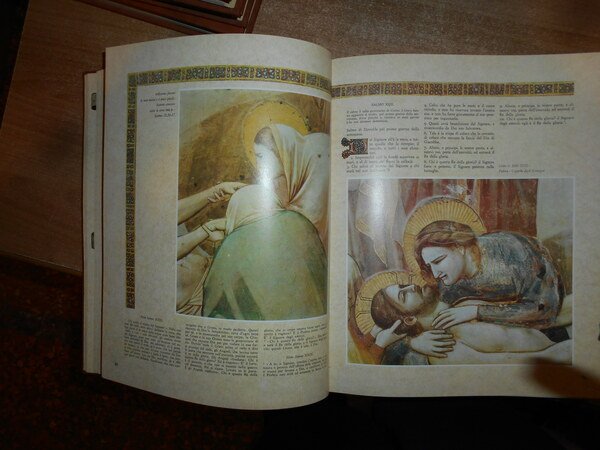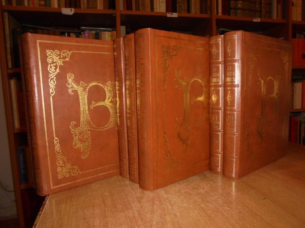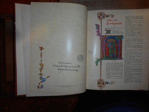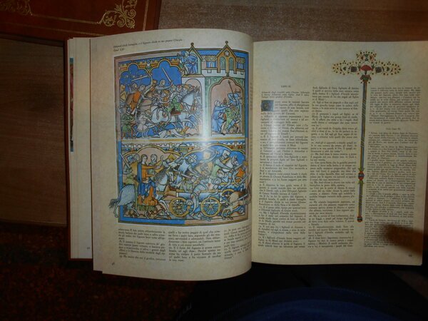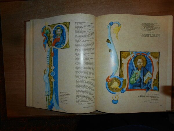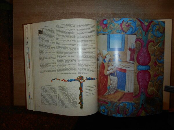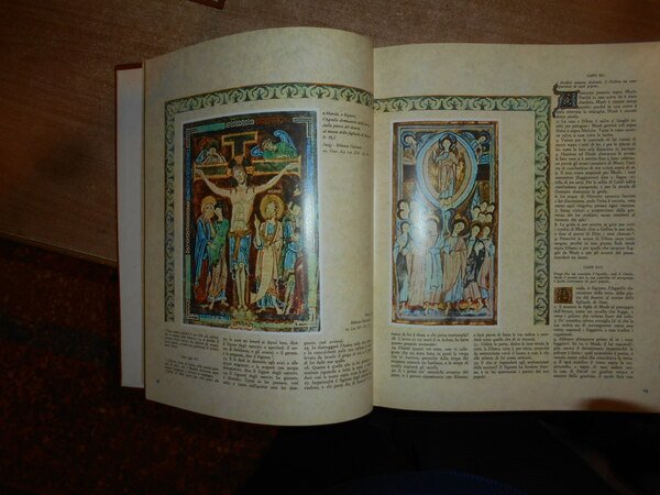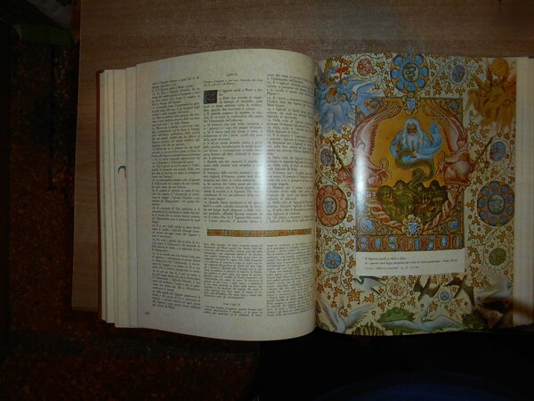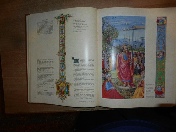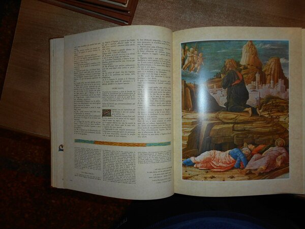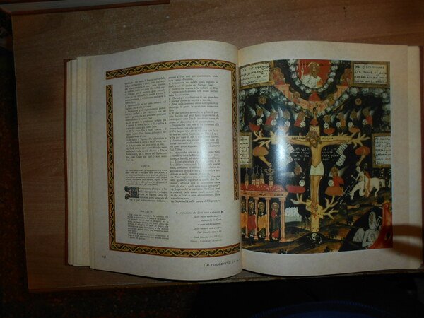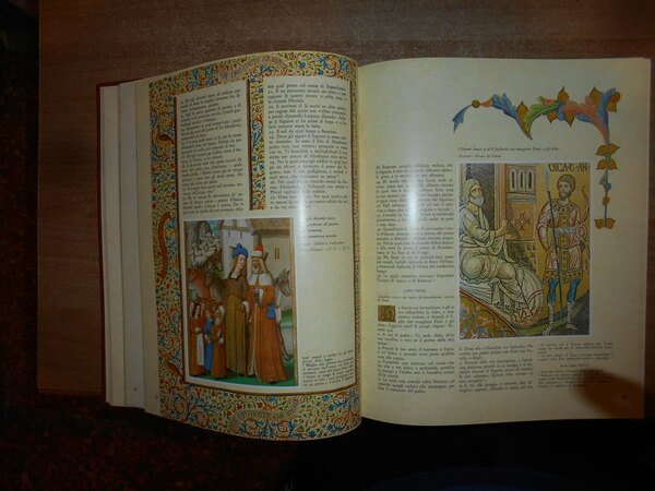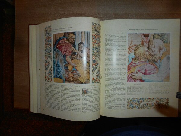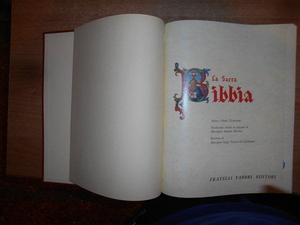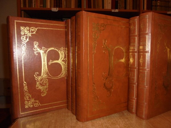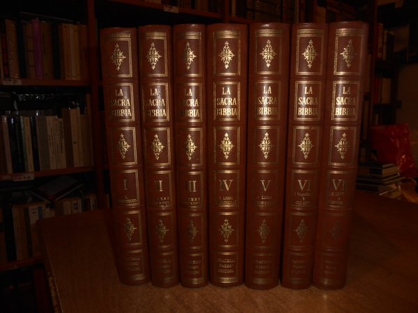 La Sacra Bibbia. Antico e nuovo Testamento. Traduzione di Monsignor Antonio Martini. Revisione di Monsignor Luigi Nazari di Calabiana. 7 volumi in-4°, similpelle con fregi e titoli in oro nei piani e sui dorsi. Piano generale dell' opera: Vol. I. Il Pentateuco di 400 pp. Vol. II. I Libri storici (da Giosuè ai 4 Libri del Re) di 336 pp. Vol. III. I Libri storici (dai Paralipomeni ai Maccabei) di 336 pp. Voll. IV. I Libri Sapienzali (da Giobbe a l' Ecclesiastico) di 432 pp. Vol. V. I Libri profetici di 435 pp. Vol. VI. I 4 Vangeli e gli Atti degli Apostoli di 380 pp. Vol. VII. Le Lettere degli Apostoli e l' Apocalisse di 396 pp. contenenti centinaia di illustrazioni tutte a colori anche a piena mezza pagina. Opera completa e come nuova. E' preferibile il ritiro presso il nostro negozio. Uff. mob. B