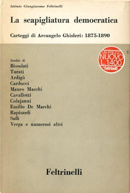 279 p., [2] p. di tav. : ill. ; 23 x 15 cm. Testi e documenti di storia moderna e contemporanea / Istituto Giangiacomo Feltrinelli, 4. Una selezionata e interessantissima raccolta di lettere scritte dai principali intellettuali, da Bissolati a Turati, da Ardigò a Carducci, da Mauro Macchi a Cavallotti, indirizzate ad Arcangelo Ghisleri ci restituiscono a tutto tondo il clima culturale e politico dell'Italia di fine secolo decimonono. A cura di Pier Carlo Masini. Legatura editoriale, coperta in cartone rigido telato di colore grigio scuro, titolo impresso in nero al piatto e al dorso. Sovraccoperta in carta colorata. All'interno due pagine di tavole fuori testo illustrate in b/n su carta patinata lucida. Qualche lievissimo segno del tempo ai profili della sovraccoperta, per il resto esemplare integro. Codice libreria 8657.