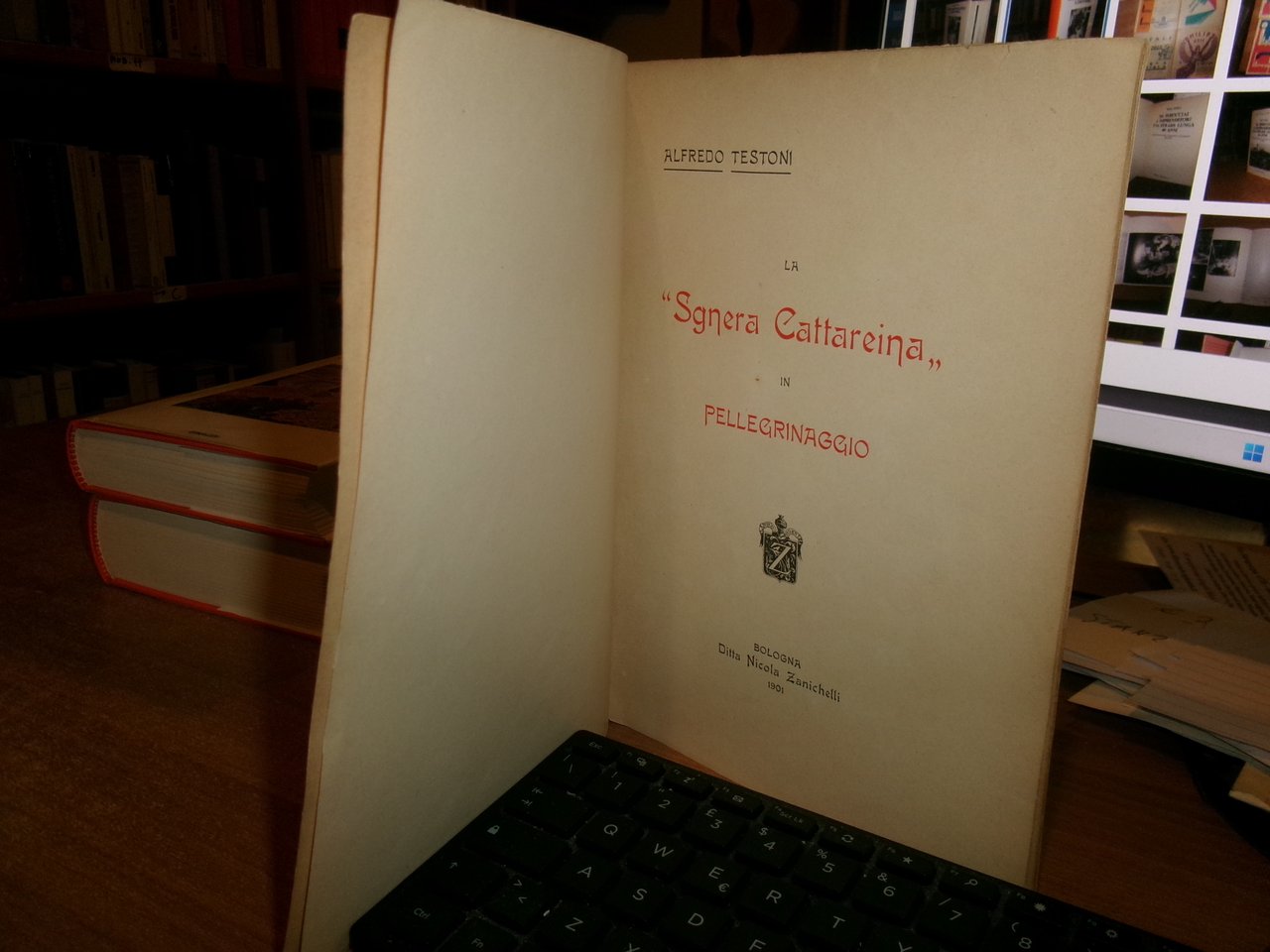 ALFREDO TESTONI. Bologna, Ditta Nicola Zanichelli, 1901. La sgnera Cattareina in pellegrinaggio. In-8°, br. orig. 58 pp. Dorso sdrucito ma libro ben conservato. Neg. Bol. mob. S entro busta trasp.