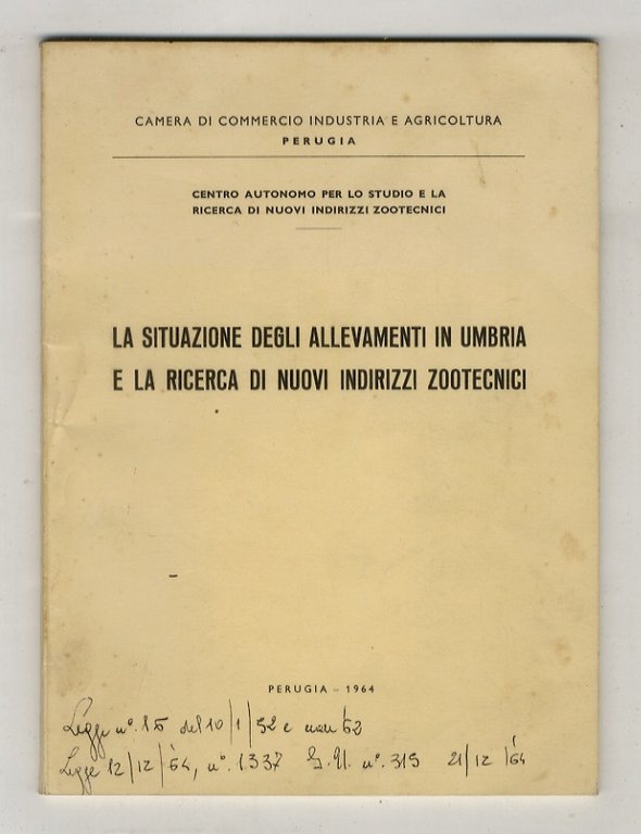 Perugia, [s.n.], 1964, in-8, br. editoriale, pp. 83, [1]. Con illustrazioni n.t. Notazione a penna sulla copertina anteriore.