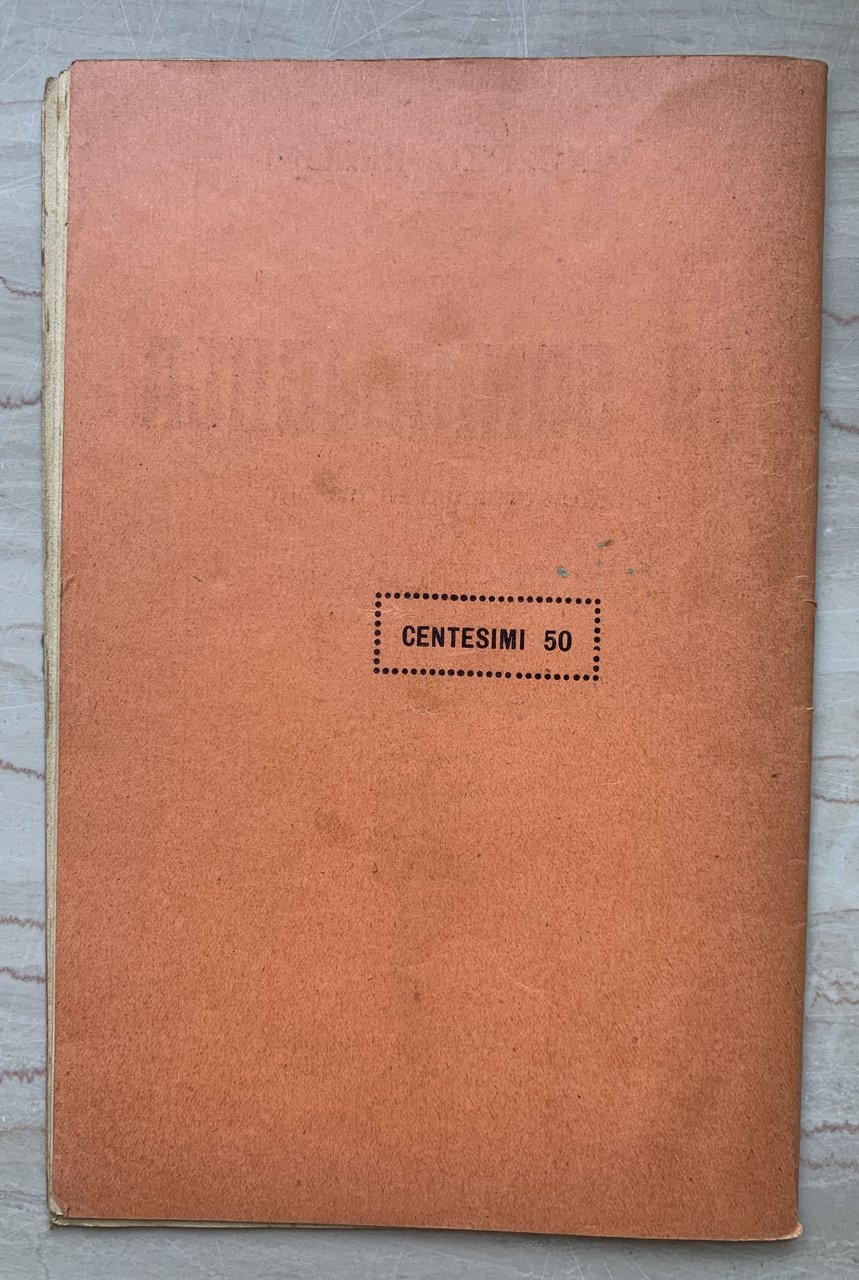 ed. MCMXXVIII/1928 (1a rappresentazione: Milano, Teatro Carcano, 6 marzo 1831). XVI/32/brossura in carta leggera albicocca con grafica in nero. Stato buono (errore di stampa della copertina che viene stampata anche nei piatti interni (2^ piatto=4^ piatto e 3^ piatto=1^ piatto) - leggera usura della copertina ai margini e al dorso - timbro a secco "MG" (Muletti Giovanni, Depositario Libretti d'Opera in Torino) che prosegue per contatto, scemando, nelle pagine successive - copertina e pagine brunite, con piccole fioriture e con qualche gora - qualche parentesi graffa tracciata a grafite ai margini delle pagine).