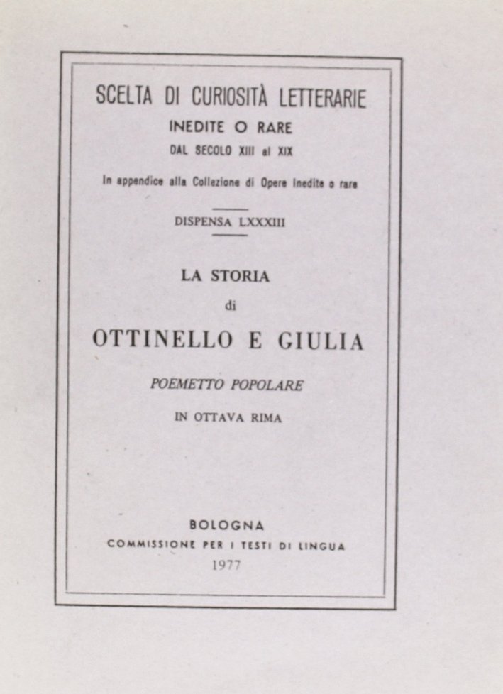 Sala Bolognese, 1969; br., pp. 76, cm 13x18. (Scelta di curiosità lett. dal sec. XIII).