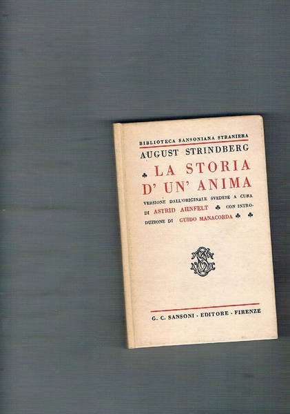 La storia di un'anima. Version dall'originale svdese di A. Ahnfelt, con introduz. di Gino Manacorda. | Libri antichi e moderni | Strindberg August.