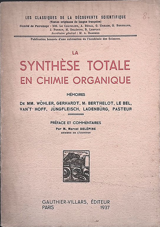 La synthése totale en chimie organique. Memoires