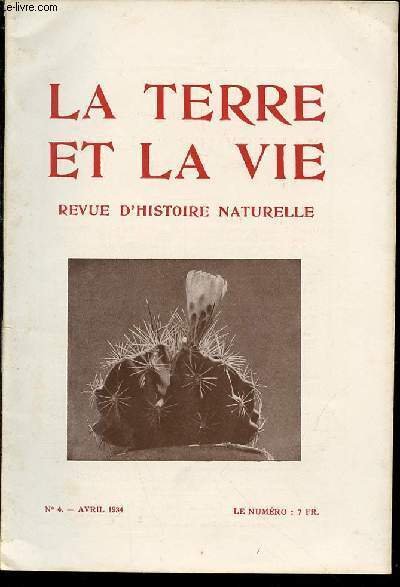 LA TERRE ET LA VIE : REVUE D'HISTOIRE NATURELLE N°4 / AVRIL - LES AUCHENIDES / LA BOUVIERE / LES CRIQUETS A LAGHOUAT EN 1933 / FLORE MAROCAINE ET L'HORTICULTURE / AVOCETTE RECURVIROSTRE / HOMMES A QUEUE / ETC.