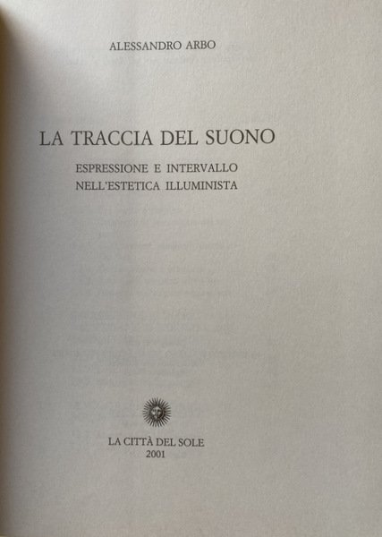 Titolo: La traccia del suono. Espressione e intervallo nell'estetica illuminista