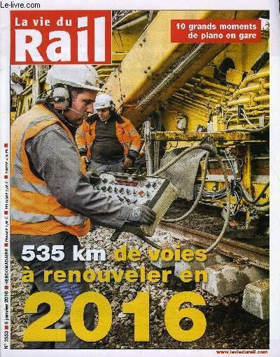 LA VIE DU RAIL N° 3553 - Infrastructures - 535 km de voies a renouveler en 2016, Régénération du réseau francilien, un train spécial zone dense en 2017, Cinq bases arrières a créer pour la suite zone dense, Istanbul : La gare d'Haydarpasa sera rénovée