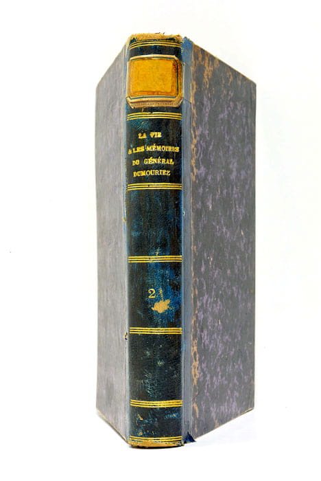 Tome II seul. 464 pages. 3 feuillets. (21x13cm). Demi-cuir. Titre et tomaison en lettres dorées. Couverture et dos légèrement frottés et brunis. Coiffes et coins émoussés. Publié à Paris en 1872, ce second tome des mémoires du Général Dumouriez offre un aperçu détaillé des événements révolutionnaires français à travers le prisme de l'un de ses acteurs clés. L'auteur, Berville et Barrière, apporte des notes et éclaircissements historiques qui enrichissent le récit du général, figure emblématique de la Révolution française. Cette période, charnière dans l'histoire de France, est ici revisitée, permettant de comprendre les dynamiques politiques et militaires de l'époque. Papier un peu bruni avec taches et rousseurs éparses. Pages légèrement déformées. Tome II seul.