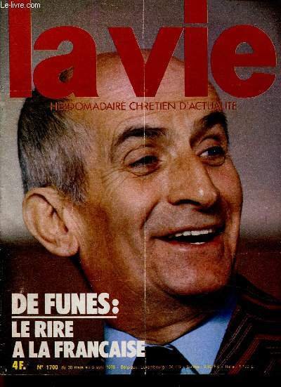 La Vie. Hebdomadaire chrétien d'actualité, n°1700, mars-avril 1978 : De Funès : le rire à la française, par François-Régy Barbry - Environnement : la Bretagne, la colère noire, par Jean-Philippe Caudron - Politique : les rendez-vous de l'Elysée - etc | Libri antichi e moderni | La Vie