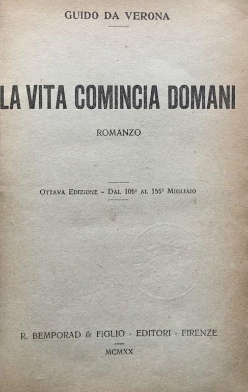Cm. 19, cart. edit., 376 pp. Segni d'uso alla rilegatura. 1920. 16 Buono (Good) Buono