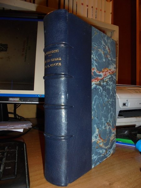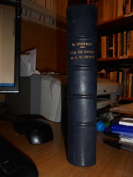 GIULIO, CESARE CROCE. Bologna, Presso Nicola Zanichelli, 1879. La Vita e le Opere di GIULIO CESARE CROCE monografia. In-8° piccolo, m. pelle, dorso a 4 nervi con titolo in oro, copertine originali conservate. XIII-516 pp. frontespizio stampato a due colori, ritratto del Croce in antiporta protetto da velina trasparente. Importante opera ed esaustiva biografia. Ottimo esemplare. Uff. E - II - 3 - 2