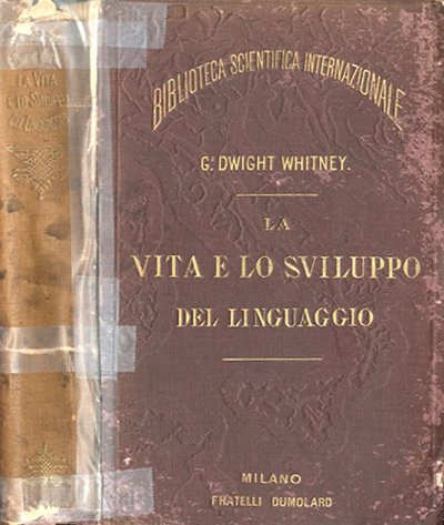 XXI, 390 p. ; 22 x 15 cm. Biblioteca Scientifica Internazionale. Titolo orginale dell'opera: "The life and growth of language". Traduzione e note di Francesco D'Ovidio. Legatura editoriale, coperta in cartone rigido telato di colore marrone scuro, titolo impresso in oro al dorso e al piatto superiore. Danni al dorso (piccola menda al dorso superiore) - riparati con nastro adesivo -, e segni del tempo alla coperta, carta interna ingiallita, per il resto esemplare da studio. Codice libreria 3632.