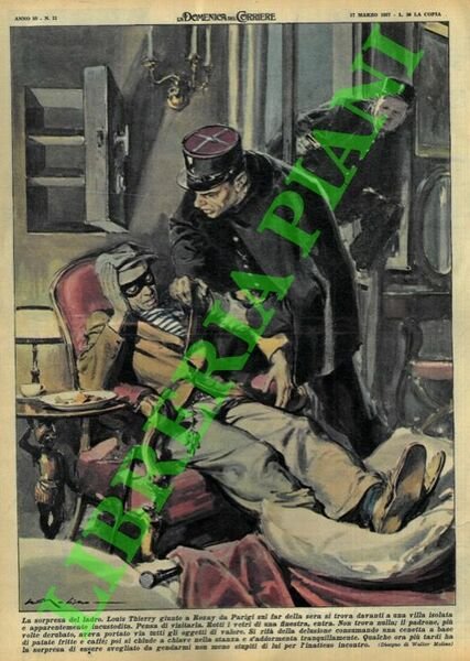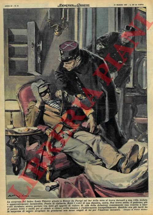 Milano, 17/03/1957, la sola copertina illustrata a colori, senza il fascicolo, della Domenica del Corriere.