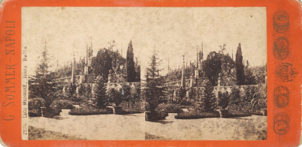 Napoli, [seconda metà del XIX secolo], fotografia stereoscopica applicata su cartoncino intestato al fotografo. La fotografia misura mm. 78x142, il cartoncino mm. 86x177. Fioriture.