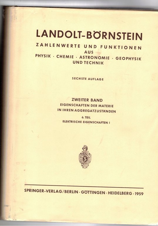 Landolt-Bornstein zahlenwerte und funktionen. Sechste auflage zweiter band Eigenschften derr materie in ihren aggregatzustanden 6 teil elktrische eigenschaften I.