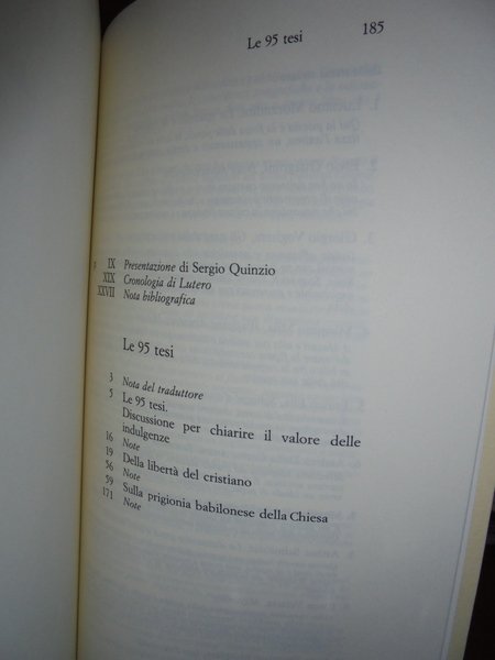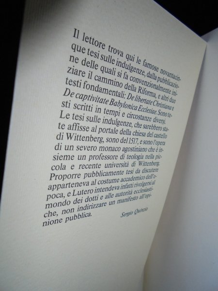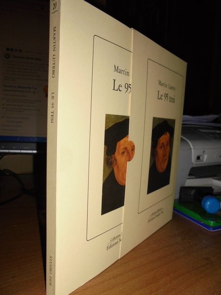 Martin, Lutero. Pordenone, Edizioni Studio Tesi, 1984. Le 95 tesi. In-8°, cartoncino edit. con alette e custodia in cartoncino. XXV, 185, (3) pp. Come nuovo. Esot. mob. 13 basso