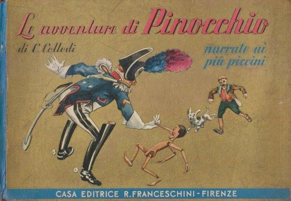 16° oblungo (16x24 cm.), cartonato edit. figurato a colori e oro, pp.(2)-97-(1), disegni b.n.n.t. e 4 tavole animate a colori f.t. di Attilio Mussino. Biaggioni 290