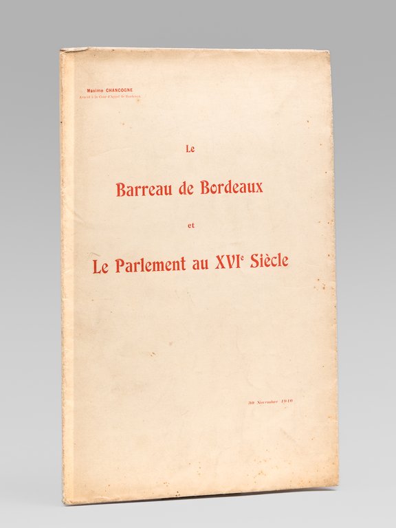 Le Barreau de Bordeaux et le Parlement au XVIe Siècle [ Edition originale - Livre dédicacé par l'auteur ] Discours prononcé le mercredi 30 novembre 1910 à la Séance d'ouverture de la Conférence des Avocats de Bordeaux