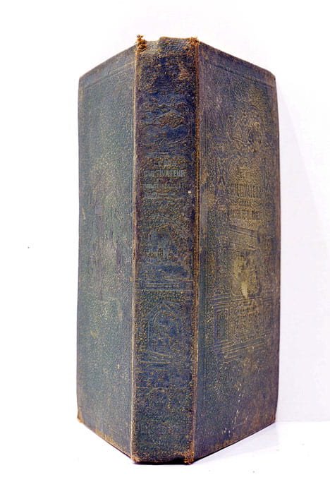 328 pages. 2 feuillets. Préface IX. Tables 72 pages. (18,5x11,5cm). Plein cuir. Couverture très salie et frottée avce signes de muillures. Coins et coiffes émoussés. Publié à Paris en 1865, cet ouvrage de M. Charles Joineaux se présente comme un guide pratique destiné aux habitants ruraux de l'époque, offrant des conseils sur l'agriculture et la gestion domestique. À une période où la France connaissait de profonds changements sociaux et économiques, suite à la révolution industrielle, cet ouvrage visait à accompagner les cultivateurs et les ménagères dans l'amélioration de leurs pratiques. Papier légèrement bruni avec rousseurs et taches éparses. Trous sans gravité.