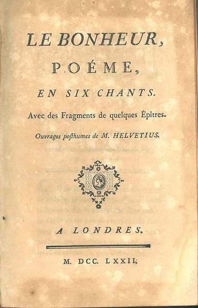 Le bonheur, poéme en six chants. Avec des fragments de quelques Epitres. Ouvrages posthumes