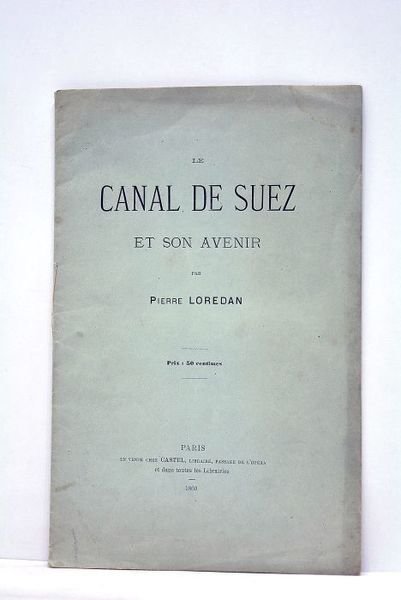 In-8. 16pp. Broché, couverture imprimée. Petites salissures. Feuillets un peu écornés. Ouvrage consacré aux perspectives économiques du Canal de Suez dont la construction, qui fut marquée par une série de scandales financiers, venait de s'achever. Première édition.