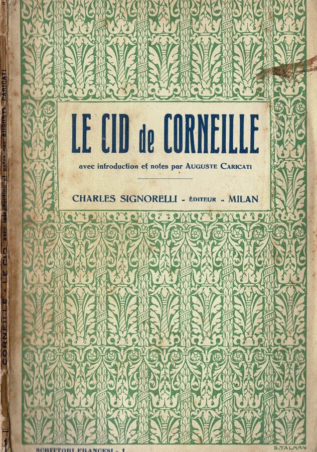 Brossura pocket, tomo n. 1 della collezione, copertina morbida decorata da fregi in bicromia, punteggiata da tracce di ossidazione, ombrata da veli di polvere, scurita dalla luce e segnata da minuscoli strappi, da mende da usura e da sgualciture da scaffale alle punte, ai bordi e al dorso, carte imbrunite dal tempo e facilmente fruibili,sono presenti annotazioni a matita, testo in lingua francese, tagli non rifilati, breve iscrizione a lapis al frontespizio, introduzione e note di Auguste Caricati. N. pag. 70.