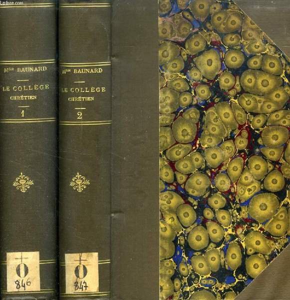 Librairie Poussièlgue Frères - Charles Poussièlgue, Paris. 1889-1892. In-8 Carré. Relié. Bon état. Couv. convenable. Dos satisfaisant. Rousseurs. 540 pages pour le tome I et 562 pages pour le tome II. Auteurs, titres, tomaisons, fleurons et filets dorés sur les dos. Etiquettes de code sur les couvertures. Quelques tampons de bibliothèque. Dieu dans l'école. Par Mgr Baunard, Recteur des Facultés catholiques de Lille.