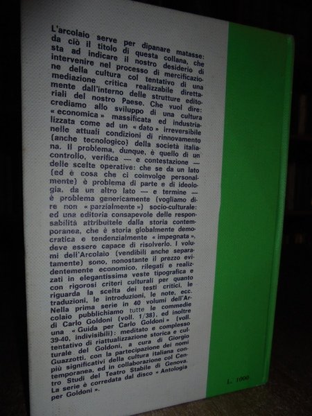 Carlo, Goldoni. L' Arcolaio, Sampietro Editore, 1967. Bologna, Grafiche Mignani. Il poeta fanatico, La Pamela, Il Cavaliere di buon gusto. In-16°, cartonato edit. 259, (3) pp. Ben conservato. Neg. mob. nero 9.