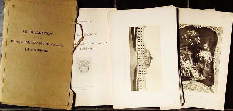 Augusto Telluccini LE DECORAZINI DELLA GIA'REALE PALAZZINA DI CACCIADI STUPINIGICARTELLA CON DESCRIZIONE DELLE DECORAZIONIE56 TAVOLE IN FOTOTIPIA CASA EDITRICE "ITALA ARS" TORINO 1924MISURE IN CM. 23,50X34,50STATO BUONO (ABRASIONE SULLA SCRITTA "PALAZZINA" IN COPERTINA DELLA CARTELLA, VEDI FOTO)GR 1450e 21233g