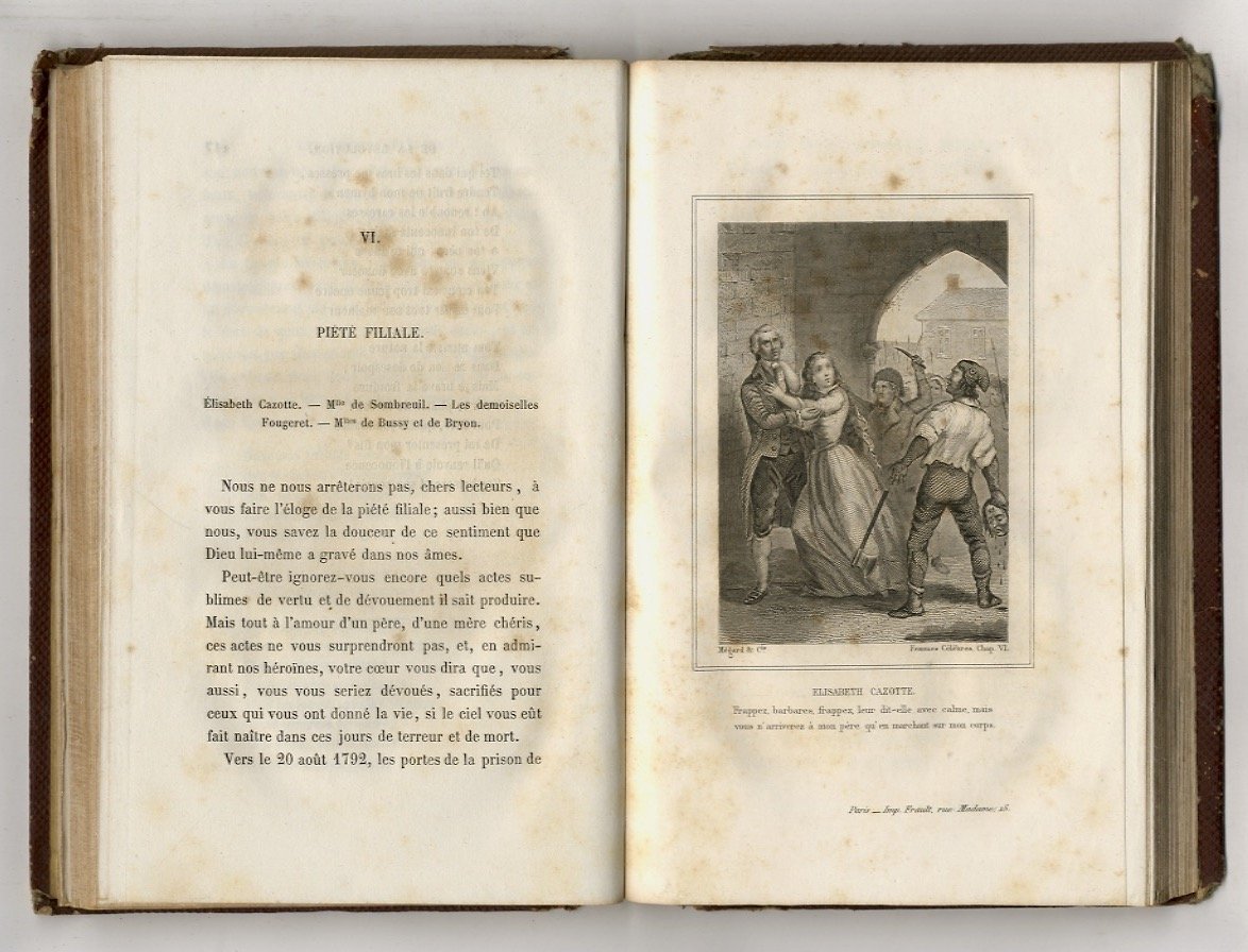 Rouen, Mégard et C.ie, 1867, in-8, cartonatura editoriale romantica con decorazioni in oro e cromolitografia montata al centro del piatto anteriore, (mancanze al dorso e alle punte dei piatti), pp. 272. Con antiporta e una tavola incisa in rame fuori testo.