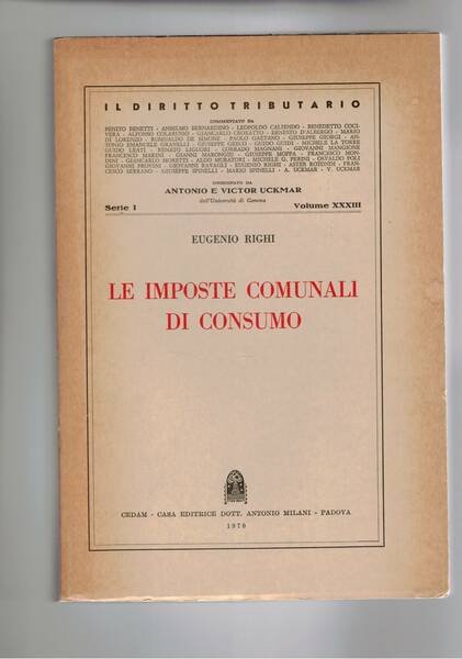 Le imposte comunali di consumo. Vol. XXXIII del diritto tributario di Antonio e V. Uckmar. | Libri antichi e moderni | Righi Eugenio.