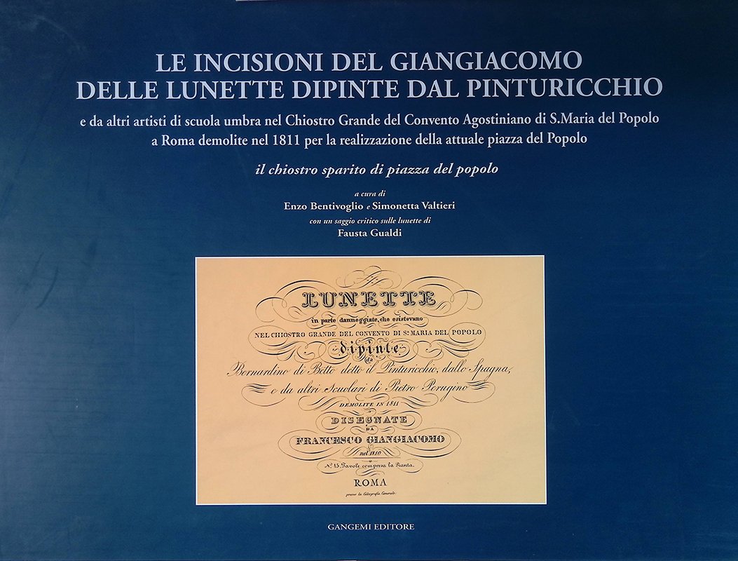 Le incisioni del Giangiacomo delle Lunette dipinte dal Pinturicchio e da altri artisti di scuola umbra nel Chiostro Grande del Convento Agostiniano di S. Maria del Popolo a Roma demolite nel 1811 per la realizzazione della attuale piazza del Popolo. Il chiostro sparito di piazza del Popolo