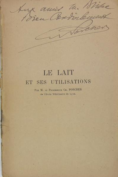 Imprimé à Vannes, 1918. Plaquette grand in-8 (24 x 15 cm) en couverture d'attente, 36 pages. Exemplaire enrichi d'un envoi de l'auteur à M; Brisac. Conférence faite le 27 janvier 1918 à la Société Scientifique d'Hygiène Alimentaire en faculté de Médecine par un professeur de l'Ecole Vétérinaire de Lyon.